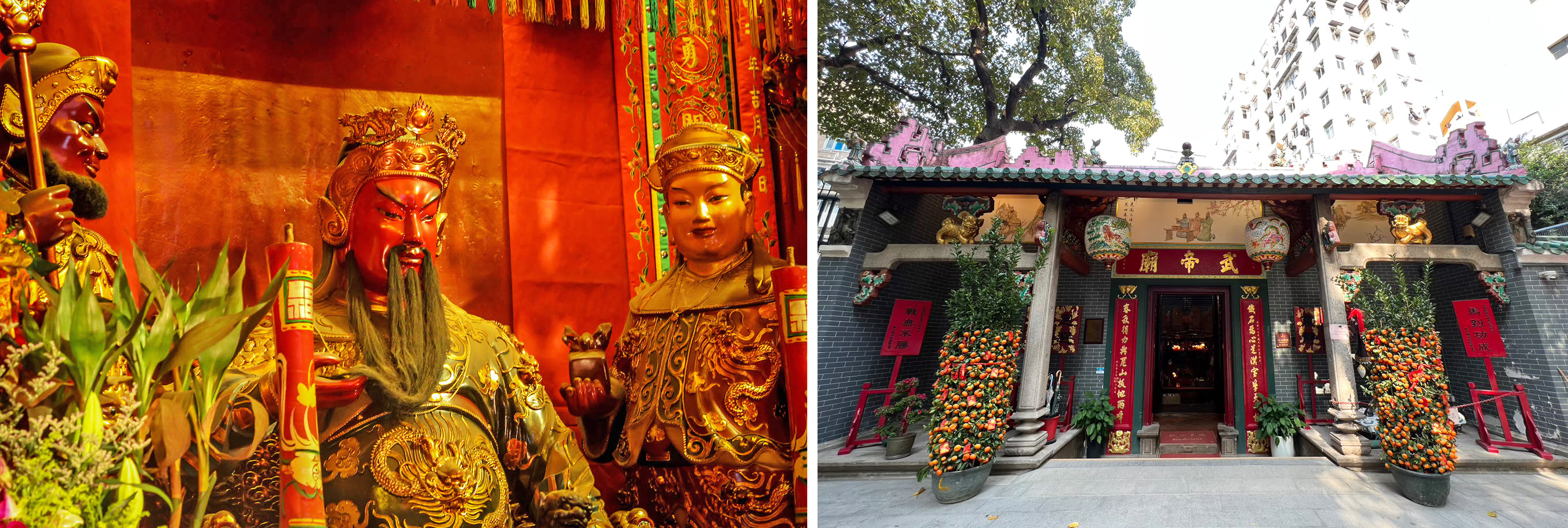 • จากนั้นนำท่านเดินทางสู่ วัดกวนไท (Kwan Tai Temple) หรือ วัดเทพเจ้ากวนอู ในเขต Sham Shui Po เป็นสถานที่ศักดิ์สิทธิ์อันเลื่องชื่อ ถือว่าเป็นวัดแห่งเดียวในเขตเกาลูน ที่สร้างขึ้นเพื่อบูชาเทพเจ้ากวนอู ซึ่งท่านเป็นเทพเจ้าแห่งความซื่อสัตย์ เปี่ยมไปด้วยคุณธรรม ผู้คนจึงมักมาขอพรท่านให้ช่วยขจัดความอยุติธรรม และขอพรเรื่องธุรกิจ การงาน บริวาร เนื่องจากเทพเจ้ากวนอู เป็นเทพที่รักษาคำพูดด้วยชีวิต รักคุณธรรม ซื่อสัตย์ ช่วยปกป้องสิ่งเลวร้าย ภัยอันตรายต่าง ๆ ท่านจึงเป็นสัญลักษณ์แห่งความเข้มแข็งโดดเดี่ยว ไม่ครั่นคร้ามต่อศัตรู ฉะนั้นการมาบูชาขอพรท่าน จะช่วยเสริมดวงไม่ให้เพลี่ยงพล้ำแก่ศัตรู ทำให้มีมิตรที่ซื่อสัตย์ คุ้มครองบริวารให้ก้าวหน้าและอยู่เย็นเป็นสุข ผู้ที่ประกอบอาชีพ ตำรวจ ทหาร และ นักการเมือง จึงมักจะนิยมบูชาเทพเจ้ากวนอู เป็นพิเศษ