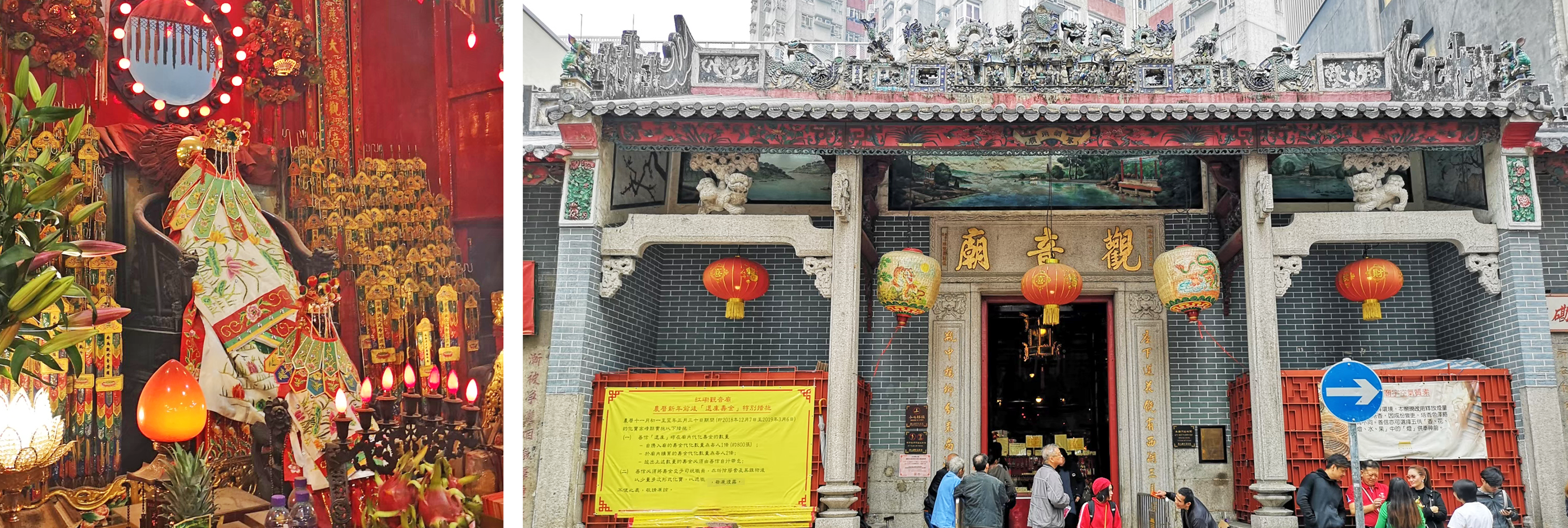 • จากนั้นนำท่านเดินทางสู่ วัดกวนไท (Kwan Tai Temple) หรือ วัดเทพเจ้ากวนอู ในเขต Sham Shui Po เป็นสถานที่ศักดิ์สิทธิ์อันเลื่องชื่อ ถือว่าเป็นวัดแห่งเดียวในเขตเกาลูน ที่สร้างขึ้นเพื่อบูชาเทพเจ้ากวนอู ซึ่งท่านเป็นเทพเจ้าแห่งความซื่อสัตย์ เปี่ยมไปด้วยคุณธรรม ผู้คนจึงมักมาขอพรท่านให้ช่วยขจัดความอยุติธรรม และขอพรเรื่องธุรกิจ การงาน บริวาร เนื่องจากเทพเจ้ากวนอู เป็นเทพที่รักษาคำพูดด้วยชีวิต รักคุณธรรม ซื่อสัตย์ ช่วยปกป้องสิ่งเลวร้าย ภัยอันตรายต่าง ๆ ท่านจึงเป็นสัญลักษณ์แห่งความเข้มแข็งโดดเดี่ยว ไม่ครั่นคร้ามต่อศัตรู ฉะนั้นการมาบูชาขอพรท่าน จะช่วยเสริมดวงไม่ให้เพลี่ยงพล้ำแก่ศัตรู ทำให้มีมิตรที่ซื่อสัตย์ คุ้มครองบริวารให้ก้าวหน้าและอยู่เย็นเป็นสุข ผู้ที่ประกอบอาชีพ ตำรวจ ทหาร และ นักการเมือง จึงมักจะนิยมบูชาเทพเจ้ากวนอู เป็นพิเศษ